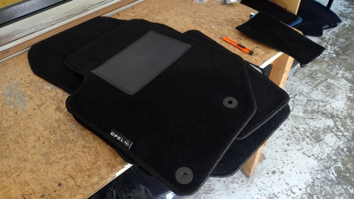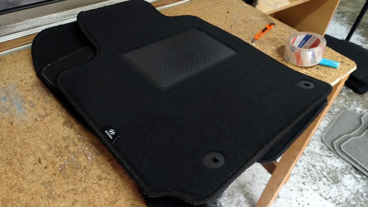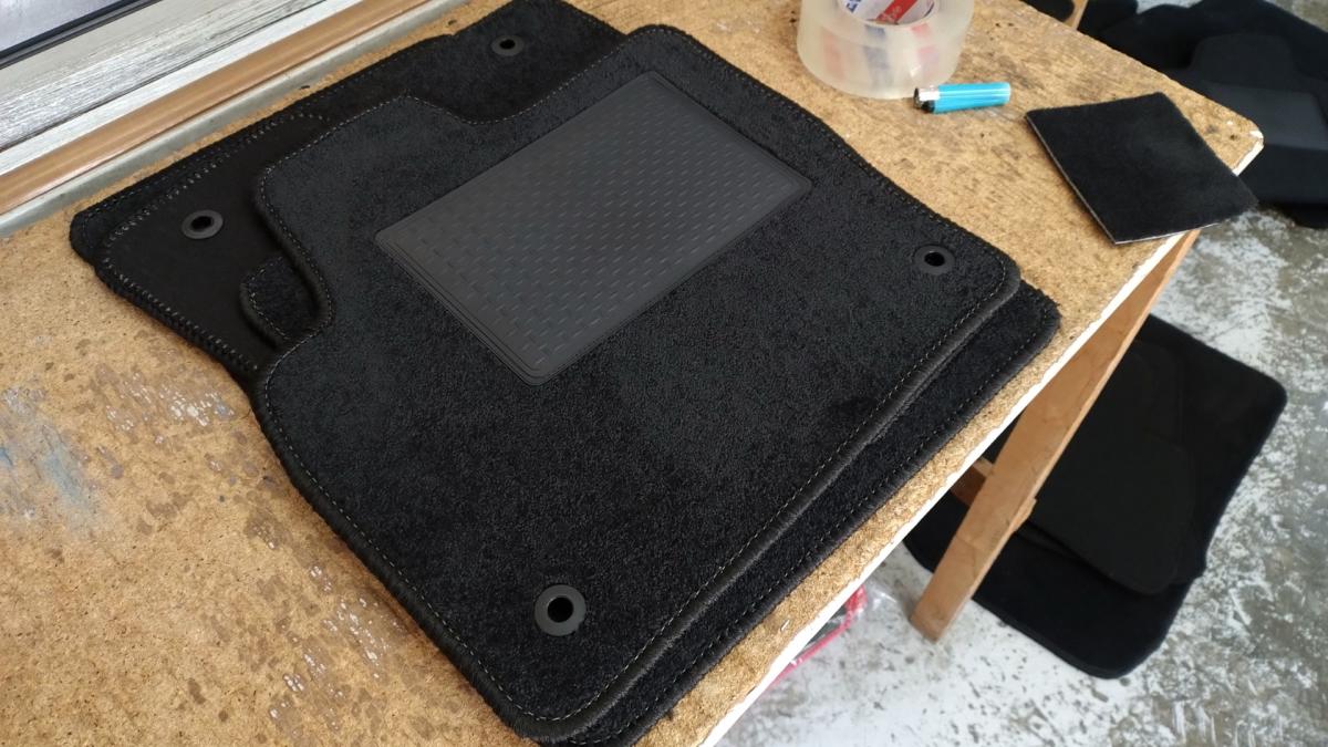 Comece por colocar o tapete no carro. Os pinos deverão estar em baixo do tapete.